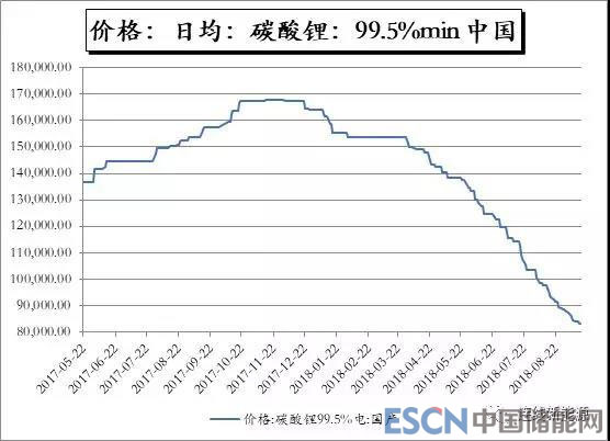 近一年來(lái)鋰電池上游核心原材料的價(jià)格下跌明顯。