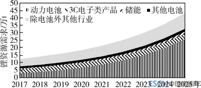 圖9 2017~2025年參考情形下中國鋰資源需求結(jié)構(gòu)變化