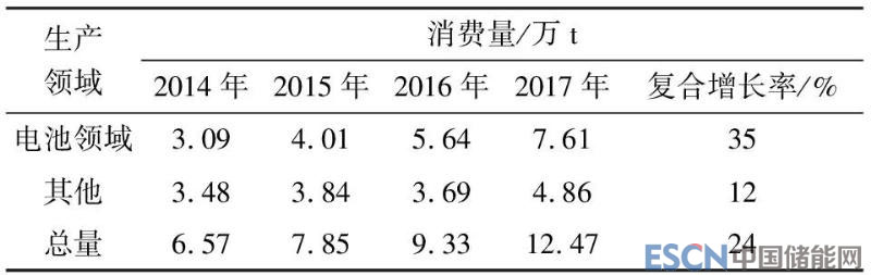 表4 2014~2017年中國電池和其他領(lǐng)域