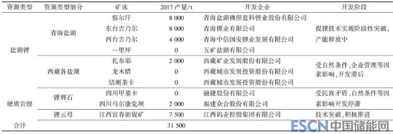 表3 中國鋰資源開發(fā)資源類型、產(chǎn)量和相關(guān)企業(yè)信息