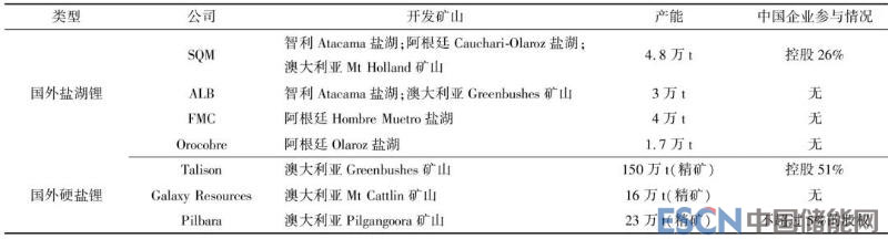 表2 國外鋰資源開發(fā)情況
