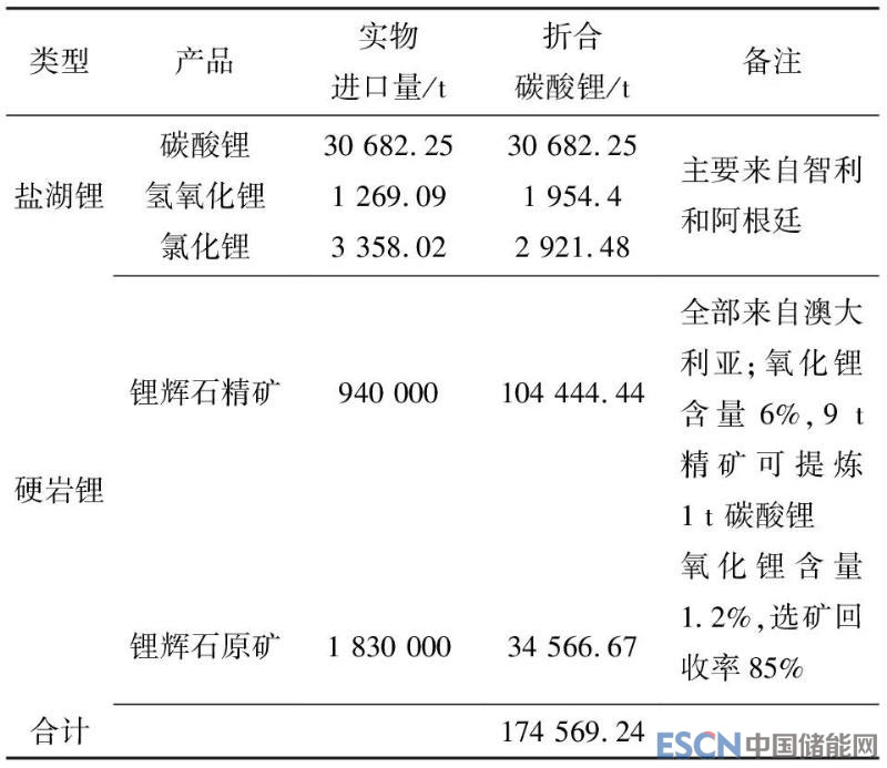 表1 2017年中國進口鋰資源分類統(tǒng)計
