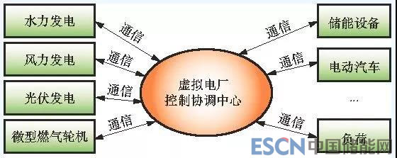 虛擬電廠并未改變每個(gè)分布式電源并網(wǎng)的方式,而是通過先進(jìn)的控制、計(jì)量、通信等技術(shù)聚合分布式電源、儲(chǔ)能系統(tǒng)、可控負(fù)荷、電動(dòng)汽車等不同類型的分布式能源并通過更高層面的軟件構(gòu)架實(shí)現(xiàn)多個(gè)分布式能源的協(xié)調(diào)優(yōu)化運(yùn)行。它能夠聚合微網(wǎng)所轄范圍之外的分布式電源,更有利于資源的合理優(yōu)化配置及利用。