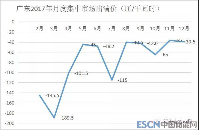 圖1 廣東2017年月度集中市場出清價