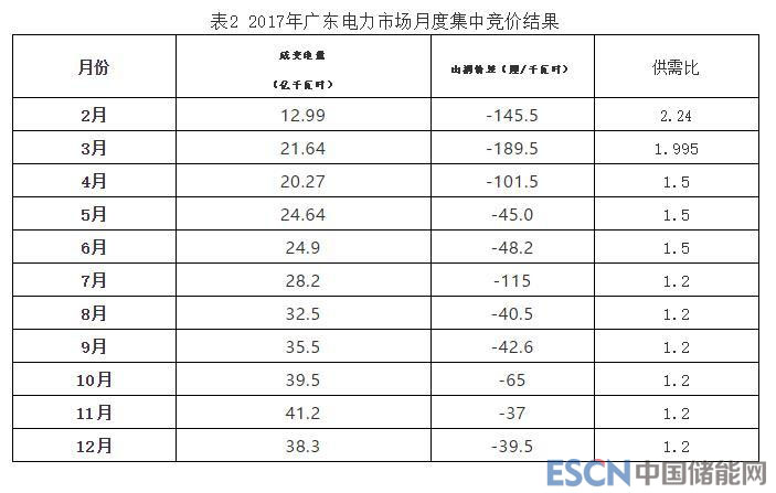 表2和圖1給出了2017年廣東電力市場月度集中競爭市場的結果。