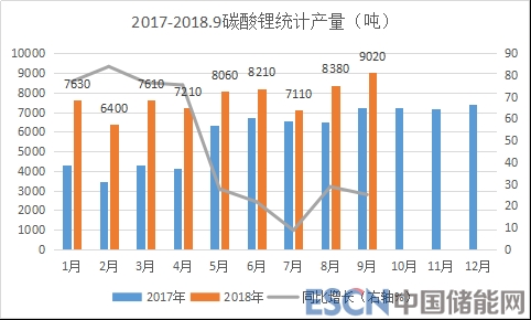 1-9月份碳酸鋰統(tǒng)計(jì)產(chǎn)量6.96萬噸,同比大幅增長56.9%,企業(yè)增擴(kuò)產(chǎn)現(xiàn)象明顯;
