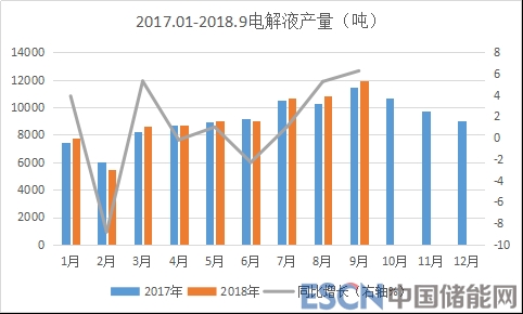 1-9月份電解液統(tǒng)計(jì)產(chǎn)量8.19萬噸,同比增長1.5%,其中下半年表現(xiàn)明顯強(qiáng)于上半年;