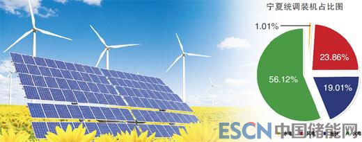 截至2018年6月30日,寧夏電網(wǎng)統(tǒng)調(diào)總裝機(jī)容量4175.21萬(wàn)千瓦。其中:火電2343.04萬(wàn)千瓦,占比56.12%;水電裝機(jī)42.23萬(wàn)千瓦,占比1.01%;風(fēng)電996.13萬(wàn)千瓦,占比23.86%;光伏793.81萬(wàn)千瓦(含分布式光伏57.15萬(wàn)千瓦),占比19.01%。風(fēng)電和光伏合計(jì)裝機(jī)容量1789.94萬(wàn)千瓦,占統(tǒng)調(diào)總裝機(jī)的42.87%。