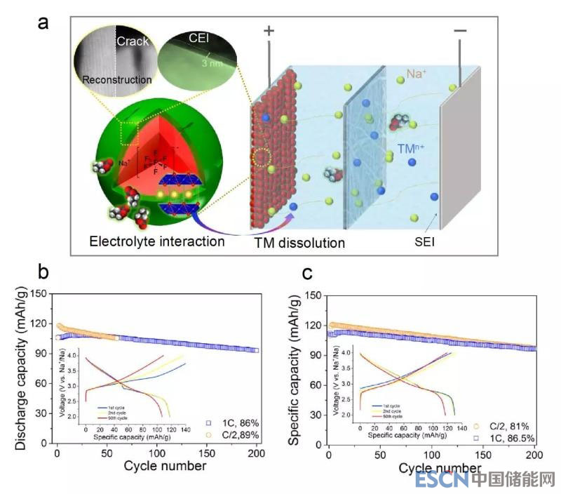 基于以上這些觀察,作者總結歸納出鈉離子電池性能衰減與正極材料界面化學性能相關的現(xiàn)象: