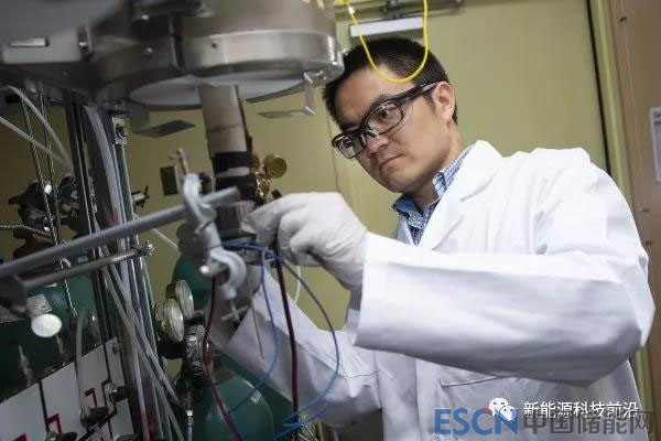 研究生助理Ben deGlee將電極連接到一個測試單元,用于測試位于佐治亞理工學院的Meilin Liu實驗室的新燃料電池。圖片來源:Georgia Tech / Christopher Moore