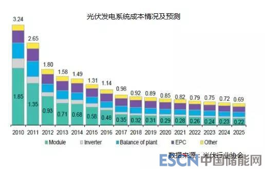 光伏行業(yè)協(xié)會統(tǒng)計(jì)顯示,2007~2017年,中國光伏行業(yè)發(fā)電度電成本累計(jì)降幅約90%。