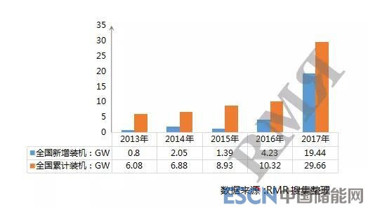 中國儲能網(wǎng)訊:2017年,中國分布式光伏新增裝機(jī)19.44GW,同比增加15.21GW,增幅高達(dá)3.7倍,占光伏總新增裝機(jī)(53.06GW)的比重為36.64%,較2016年提升24.39個(gè)百分點(diǎn),創(chuàng)歷史新高。2017年分布式新增裝機(jī)不僅是往年的數(shù)倍,還遠(yuǎn)超2016年底的累計(jì)裝機(jī),可以說2017年是中國分布式光伏發(fā)展的元年。