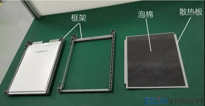 軟包電池相比于方形電池來(lái)說(shuō),在能量密度和散熱性方面都有一定的優(yōu)勢(shì),不過(guò)在機(jī)械結(jié)構(gòu)上會(huì)要求更高。華特電動(dòng)生產(chǎn)的電池組中,每個(gè)電芯單元會(huì)分別配有一個(gè)泡棉和一個(gè)散熱片,再加上外側(cè)的電池框,組成最小的單元,被稱之為小模組。其中泡棉的作用在于在電芯發(fā)生膨脹后,通過(guò)壓縮自身體積起到緩沖的作用,是保護(hù)電芯的作用。