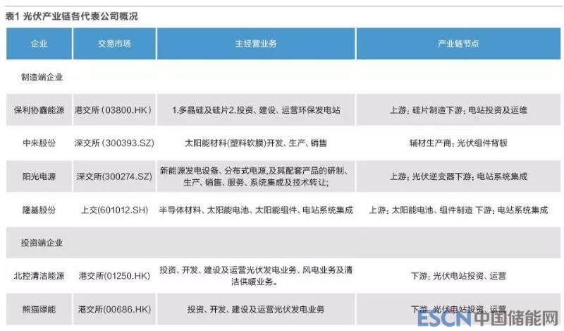 光伏行業(yè)在國家政策鼓勵(lì)下蓬勃發(fā)展了若干年,如今平價(jià)上網(wǎng)時(shí)代的來臨,產(chǎn)業(yè)鏈相關(guān)企業(yè)是否可以利用市場(chǎng)的力量獨(dú)立前行?衡量一個(gè)行業(yè)健康程度,需要認(rèn)真審視該行業(yè)產(chǎn)業(yè)鏈關(guān)鍵環(huán)節(jié)的企業(yè)財(cái)務(wù)狀況,本文選擇產(chǎn)業(yè)鏈中的代表性企業(yè)(表1)——投資商、硅片制造商、組件制造商、逆變器制造商和輔材制造商,從各相關(guān)企業(yè)的利潤質(zhì)量、現(xiàn)金流質(zhì)量、資產(chǎn)質(zhì)量和資本結(jié)構(gòu)四個(gè)方面綜合分析其財(cái)務(wù)的健康程度。