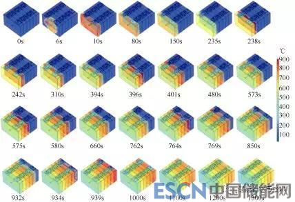 圖4 熱失控蔓延三維模型的溫度分布