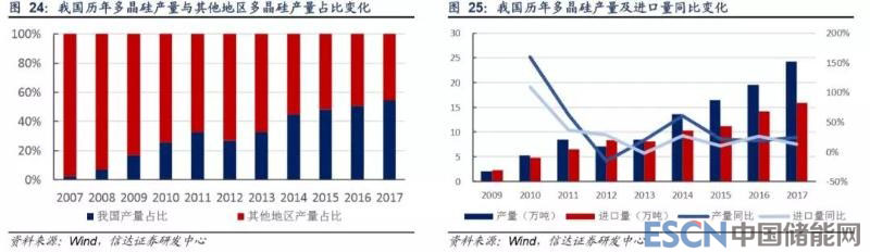 保利協(xié)鑫(江蘇中能)、特變電工(新特能源)、通威股份(四川永祥)和大全新能源是我國四大多晶硅生產(chǎn)企業(yè),截至 2017 年其合計(jì)產(chǎn)能為 15 萬噸,合計(jì)市占率達(dá) 54%,且四家在未來 1-2 年內(nèi)均有萬噸級擴(kuò)產(chǎn)計(jì)劃,合計(jì)新增產(chǎn)能約 13 萬噸,基本 與 2017 年我國多晶硅進(jìn)口數(shù)量相當(dāng)。