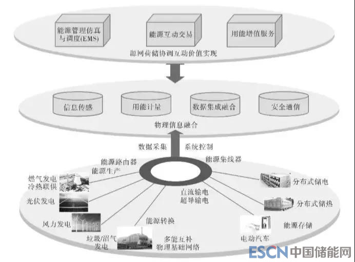 覆蓋能源生產(chǎn)、傳輸、消費、存儲、轉換的整個能源鏈,產(chǎn)業(yè)園區(qū)綜合能源系統(tǒng)中信息共享,能量流與信息流的有機整合、互聯(lián)互動、緊密耦合,形成信息物理系統(tǒng)(cyber physical system,CPS)。信息物理系統(tǒng)是園區(qū)綜合能源系統(tǒng)的重要發(fā)展方向?;ヂ?lián)網(wǎng)、物聯(lián)網(wǎng)、大數(shù)據(jù)、云計算等的深度應用,有效提升園區(qū)綜合能源系統(tǒng)的靈活性、適應性及智能化。通過對等開放的信息-物理系統(tǒng)架構,園區(qū)綜合能源系統(tǒng)將具備高可靠安全的通信能力、全面的態(tài)勢感知能力、大數(shù)據(jù)處理計算能力以及分布式協(xié)同控制能力。