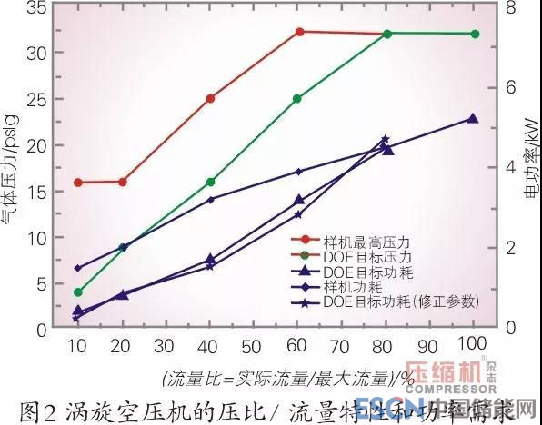 Author D.Little公司所設(shè)計的渦旋式空壓機的壓比/流量特性已滿足DOE的要求,其最高壓比達到3.2。