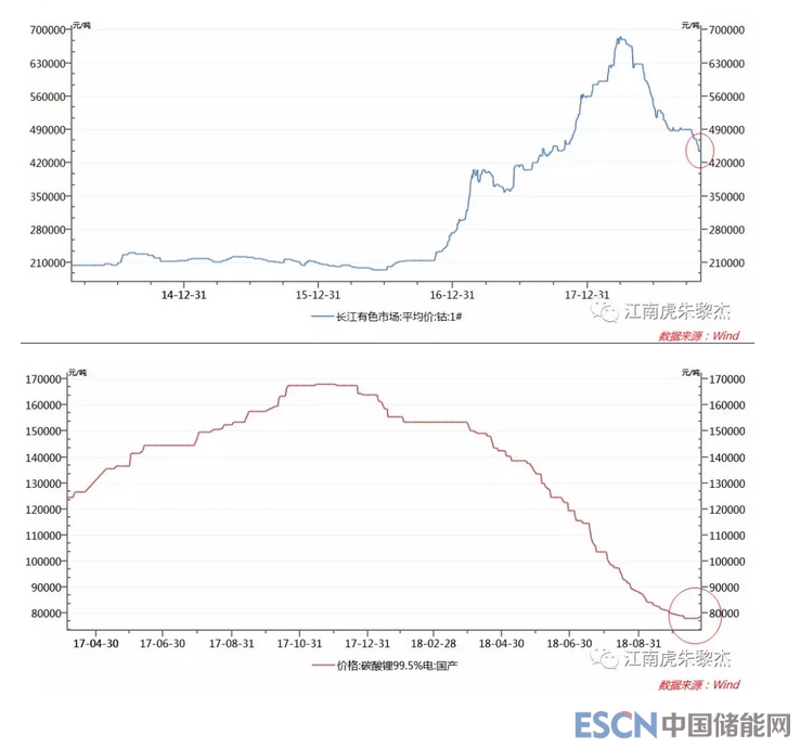 1. 2018年鈷和鋰的下跌都是迅猛的,筆者盡管看對了方向,但下跌的斜率還是超出了預(yù)期;