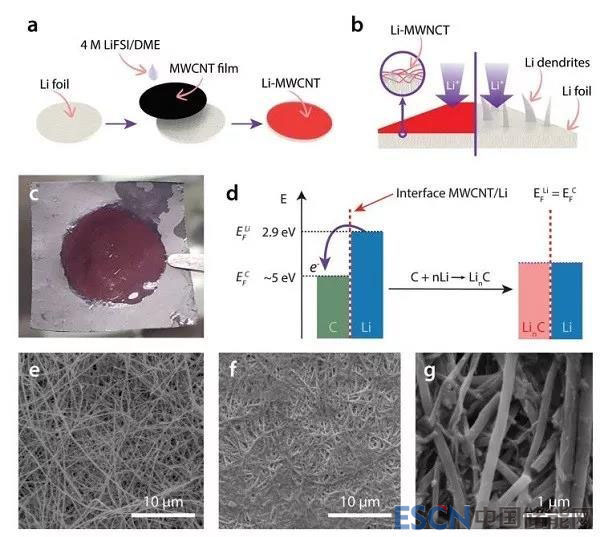 圖1. Li-MWCNT界面保護(hù)的金屬鋰負(fù)極