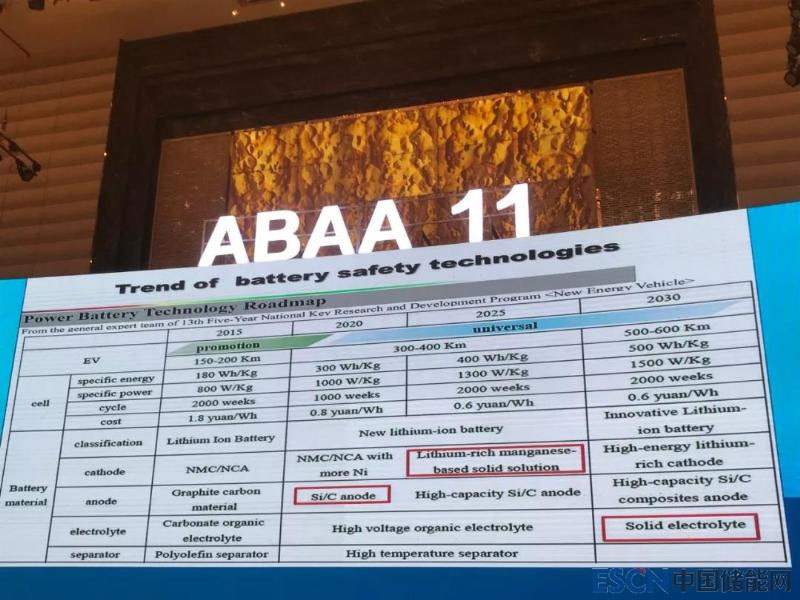 至于2020年之后,歐陽明高透露,中國動力電池2025年能量密度目標(biāo)400wh/kg,材料體系應(yīng)該是富鋰錳基正極+高比能硅碳負(fù)極;2030年,能量密度目標(biāo)是500wh/kg,材料體系方面,正負(fù)極仍是富鋰錳基正極+高比能硅碳負(fù)極,但是電解液將演變?yōu)楣虘B(tài)電解液。