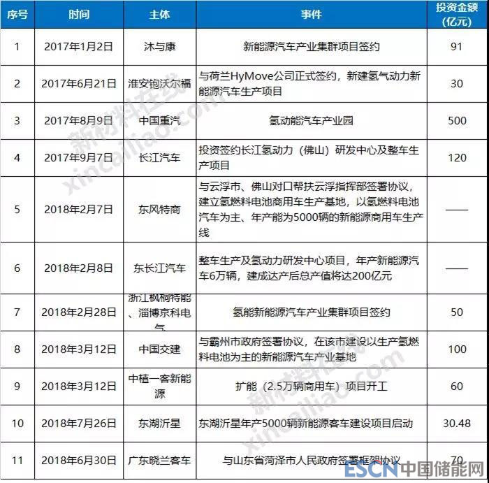 本文匯總了2017~2018年中國氫燃料電池產(chǎn)業(yè)鏈的相關(guān)投資,累計(jì)投資金額2193.16億元。其中氫燃料電池汽車相關(guān)投資額,約有1052億元,占總投資額的一半。