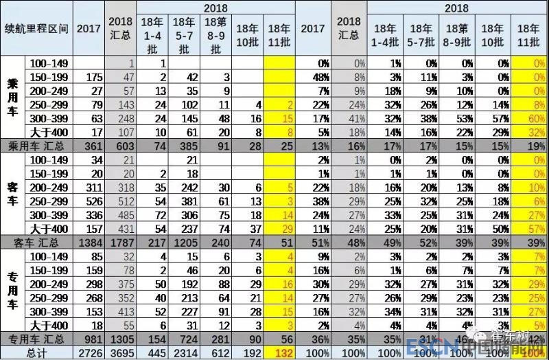 2018年的第11批目錄完全是面對(duì)新補(bǔ)貼階段的市場(chǎng)要求,產(chǎn)品提升較快。隨著傳統(tǒng)燃油車的市場(chǎng)低迷,新能源的企業(yè)加入熱情很高,更多企業(yè)進(jìn)入新能源車的領(lǐng)域。本月進(jìn)入的高端乘用車相對(duì)較多,對(duì)純電動(dòng)的發(fā)展也是相對(duì)較好的,