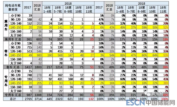 18年客車電池提升很快,磷酸鐵鋰的占比保持95%以上,18年第11批磷酸鐵鋰的電池的能量密度達(dá)到120以下為0%.。由于客車的競(jìng)爭(zhēng)相對(duì)充分,大部分客車企業(yè)都能實(shí)現(xiàn)120的補(bǔ)貼鼓勵(lì)要求??蛙嚹壳爸饕N著補(bǔ)貼推動(dòng),但高于140瓦/千克的新品也是已經(jīng)成為占比60%的新品主流,但低密度的也較多。