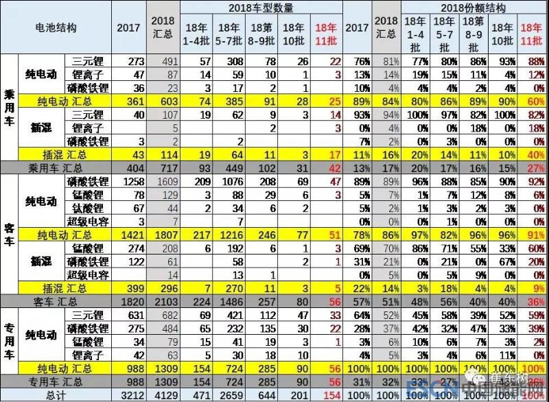 專用車的目錄是磷酸鐵鋰和三元鋰的共同推動(dòng),18年第1-4批的磷酸鐵鋰達(dá)到50%雖是偏高,低成本需求依舊相對(duì)較多。第11批的磷酸鐵鋰也是很多。