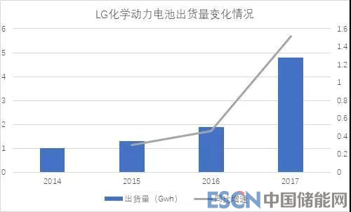 LG化學(xué)隸屬于韓國三大集團之—LG集團,自1947年成立以來在半個世紀的時間里, LG化學(xué)通過不斷的革新和研究開發(fā)活動,成長為領(lǐng)導(dǎo)韓國化學(xué)工業(yè)的韓國最大的綜合化學(xué)公司。1998年,LG化學(xué)正式開始研發(fā)鋰離子電池,憑借自身數(shù)十年材料生產(chǎn) 研發(fā)經(jīng)驗,LG化學(xué)在開發(fā)鋰電池的時候有產(chǎn)業(yè)鏈協(xié)同的優(yōu)勢,可以將正負極材料, 隔離膜等方面都有獨到的技術(shù),第一時間導(dǎo)入到它的產(chǎn)品設(shè)計中,直接反映到電芯 研發(fā)環(huán)節(jié)擁有獨特的技術(shù)。目前,LG化學(xué)可以從Cell、模塊、BMS、Pack開發(fā)到技術(shù)支持,提供與動力電池相關(guān)的全部產(chǎn)品組合。過去幾年,LG化學(xué)動力電池業(yè)務(wù)營 業(yè)收入逐年增長,2017年動力電池出貨量達到4.5GWh。