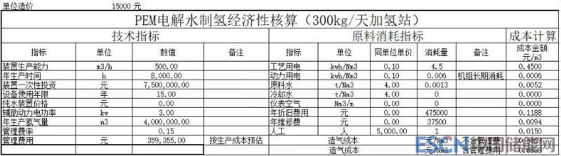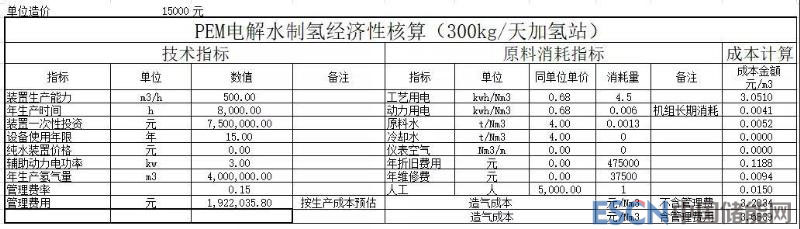 據(jù)了解,三峽資本認(rèn)為在引進(jìn)Proton的PEM電解水設(shè)備生產(chǎn)線后,設(shè)備價(jià)格將會(huì)降低到原來(lái)的1/3,而目前國(guó)內(nèi)代理報(bào)價(jià)400Nm3/h的PEM產(chǎn)品銷售價(jià)格為2000萬(wàn)RMB左右(不含稅運(yùn)),按照這個(gè)估算,產(chǎn)業(yè)化后的MW級(jí)PEM電解水設(shè)備可降至1.5萬(wàn)RMB/(Nm3/h)。以500Nm3/h(1MW,同等規(guī)格堿水制氫設(shè)備售價(jià)1.0萬(wàn)RMB/(Nm3/h))為日供氫量300Kg的加氫站為例,針對(duì)不同電價(jià)對(duì)PEM純水電解制氫成本進(jìn)行敏感性分析。