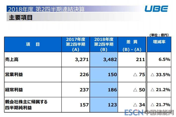 由圖可知,宇部興產(chǎn)的銷售額較去年同期上升了6.5%,但是營業(yè)利潤下降了33.5%,凈利潤下降了21.7%。