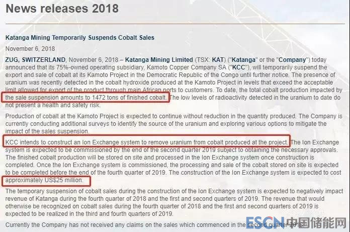 該礦石是KAT的Kamoto項目,經(jīng)檢測該項目生產(chǎn)的氫氧化鈷中,檢測到鈾的含量超過了可接受的限度,不能通過非洲主要港口向客戶出口產(chǎn)品。