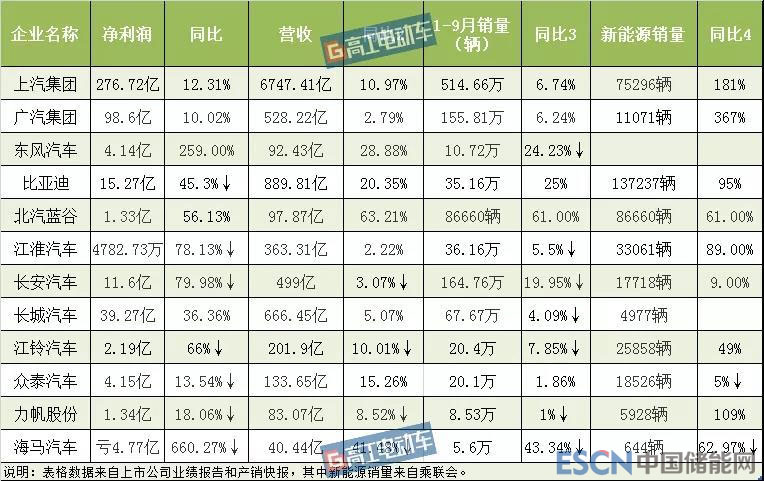 近期,高工電動(dòng)車統(tǒng)計(jì)已披露前三季度業(yè)績(jī)報(bào)告的12家上市乘用車企發(fā)現(xiàn),今年整體車市增速放緩,僅有5家車企交出了不錯(cuò)的成績(jī),其余均出現(xiàn)了不同程度的凈利下滑,其中凈利最高為上汽集團(tuán)達(dá)276億,最低為海馬汽車虧損近5億,呈現(xiàn)較為明顯的兩極分化現(xiàn)象。