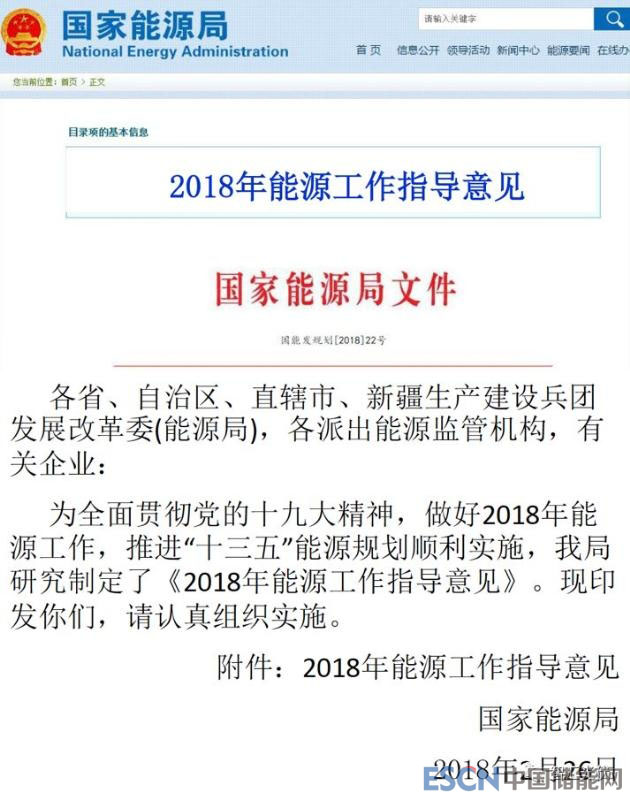 國家能源局在2018年初的《2018年能源工作指導(dǎo)意見》中提出: