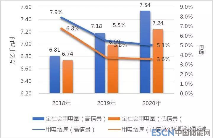 2019~2020年的電力消費(fèi)增速則主要取決于舊動能——即高耗能行業(yè)退出的速度和新動能——即二產(chǎn)新興制造業(yè)和現(xiàn)代服務(wù)業(yè)的發(fā)展速度,電能替代的用電增長規(guī)??深A(yù)見;根據(jù)日本、韓國等國和北京、上海等發(fā)達(dá)地區(qū)人均GDP跨越1萬美元前后居民生活用電持續(xù)快速增長的經(jīng)驗(yàn),生活用電增長將繼續(xù)保持高位,但會因天氣因素而波動。特別需要指出的是,當(dāng)前我國經(jīng)濟(jì)社會發(fā)展的內(nèi)外部環(huán)境有變,宏觀經(jīng)濟(jì)下行的壓力巨大,中共中央政治局7月31日召開會議,要求保持經(jīng)濟(jì)平穩(wěn)健康發(fā)展,堅(jiān)持實(shí)施積極的財(cái)政政策和穩(wěn)健的貨幣政策,提高政策的前瞻性、靈活性、有效性。財(cái)政政策要在擴(kuò)大內(nèi)需和結(jié)構(gòu)調(diào)整上發(fā)揮更大作用。要把好貨幣供給總閘門,保持流動性合理充裕。要做好穩(wěn)就業(yè)、穩(wěn)金融、穩(wěn)外貿(mào)、穩(wěn)外資、穩(wěn)投資、穩(wěn)預(yù)期工作。加大基礎(chǔ)設(shè)施領(lǐng)域補(bǔ)短板的力度;把防范化解金融風(fēng)險(xiǎn)和服務(wù)實(shí)體經(jīng)濟(jì)更好結(jié)合起來;推進(jìn)改革開放,繼續(xù)研究推出一批管用見效的重大改革舉措。今后幾年,必然會增加基礎(chǔ)設(shè)施投資,特別是西部地區(qū)和農(nóng)村基礎(chǔ)設(shè)施投資;因此鋼鐵、建材等高耗能行業(yè)可能會大起大落,影響舊動能發(fā)展態(tài)勢。在此基礎(chǔ)上,進(jìn)一步考慮新舊動能轉(zhuǎn)換和居民用電增長進(jìn)入快車道等因素,預(yù)計(jì)2020年全社會用電量會介于7.24萬億到7.54萬億千瓦時(shí)之間,高情景比此前“十三五”規(guī)劃的電量預(yù)測7.2萬億千瓦時(shí)加2000億千瓦時(shí)還要高出1400億千瓦時(shí)。