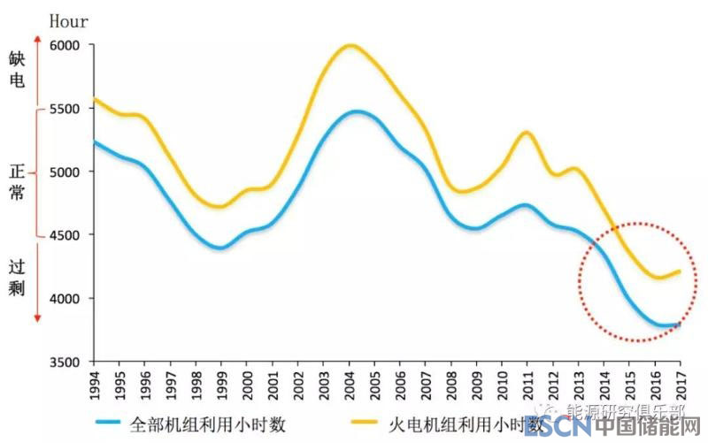 “十三五”期間煤電停緩建不能全面放開,煤電供給側(cè)結(jié)構(gòu)性改革政策仍需定力。自2014年中國煤電項(xiàng)目審批權(quán)從中央政府下放到地方政府以來,煤電項(xiàng)目迎來井噴式發(fā)展。從最直觀的數(shù)據(jù)來看,火電平均利用小時(shí)數(shù)由2014年的4739小時(shí)大幅滑落到2017年的4289小時(shí),平均利用小時(shí)數(shù)遠(yuǎn)低于5000小時(shí)的正常水平(圖2)。煤電項(xiàng)目經(jīng)過一段時(shí)間的野蠻式發(fā)展,當(dāng)前面臨的突出問題還是產(chǎn)能過剩和淘汰落后。為此,國務(wù)院在2018年初已經(jīng)明確要求“30萬千瓦以下不達(dá)標(biāo)煤電機(jī)組退出”,這既是空氣質(zhì)量達(dá)標(biāo)三年攻堅(jiān)的要求,也是煤電行業(yè)自身健康可持續(xù)發(fā)展必須解決好的供給側(cè)改革問題。