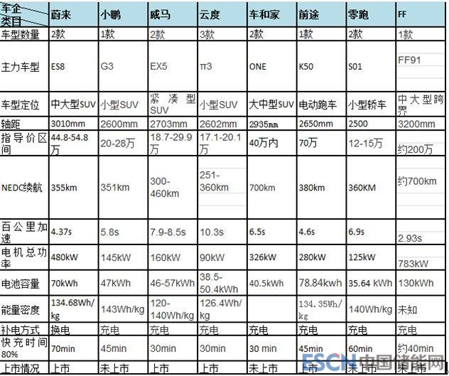 鑒于企業(yè)太多,我們且選擇八家比較活躍且具代表性的造車新勢力——蔚來、小鵬、威馬、云度、車和家、前途、零跑以及FF,從融資、產品、技術、生產、交付等維度做具體分析。