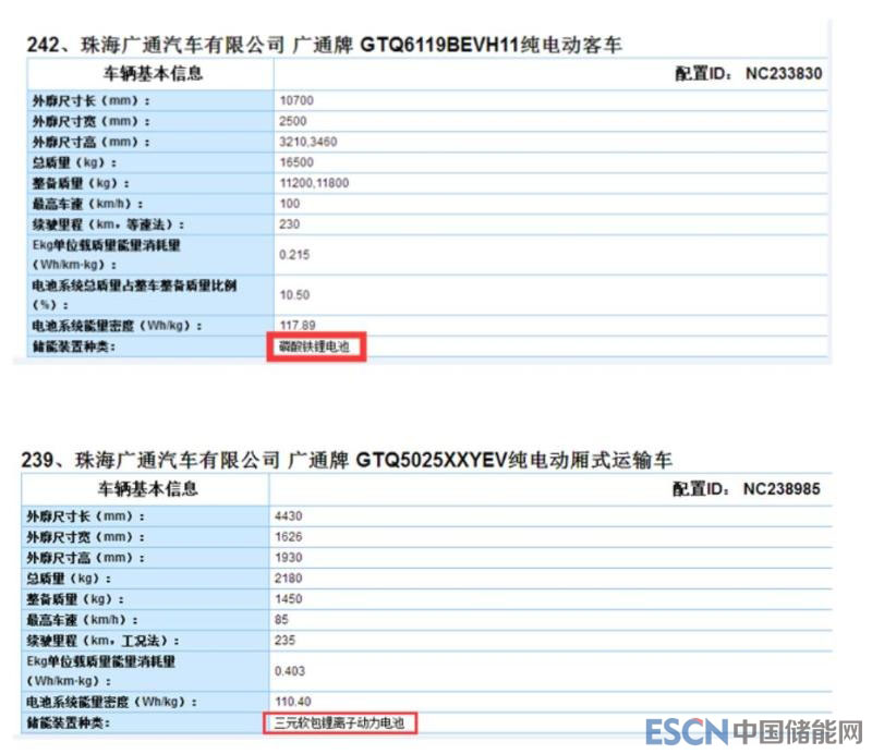 銀隆新能源旗下的廣通汽車(chē)本身也在使用各種技術(shù)的動(dòng)力電池,這是《新能源汽車(chē)推廣應(yīng)用推薦車(chē)型目錄》(2017年第8批)車(chē)型主要參數(shù)中的部分信息