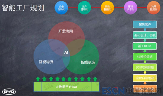 “智能制造的遠(yuǎn)景是數(shù)字化、智慧化、個性化,對鋰離子電池產(chǎn)業(yè)來說數(shù)字化是核心,數(shù)字化沒有做到,根本談不到智慧?!北葋喌瞎煞萦邢薰倦姵厥聵I(yè)群PMC經(jīng)理張壽波表示,比亞迪智能工廠的規(guī)劃,包括開發(fā)協(xié)同、智能制造和智能物流三大塊,基于大數(shù)據(jù)的平臺,基于IOT(物聯(lián)網(wǎng))的數(shù)據(jù)采集,他表示“希望我們的設(shè)備是自動化的,生產(chǎn)是透明的,物流是智能的,管理是共享的,決策也是基于數(shù)據(jù)的?!?