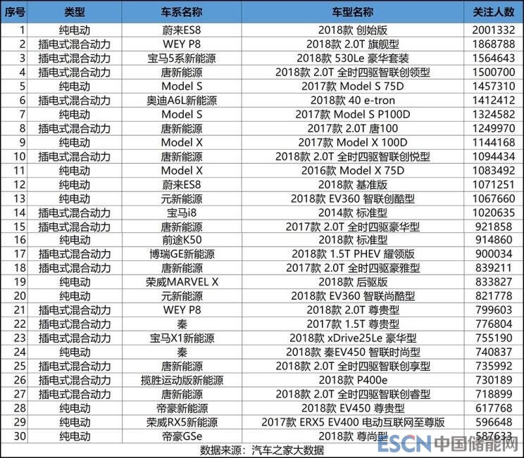 基于汽車之家6000萬用戶,我們統(tǒng)計出前30名已上市新能源車型用戶關(guān)注熱度排名。從排名來看,汽車之家平臺用戶對插電式混動車型關(guān)注度并不低于純電動車型,甚至略高純電動車型。統(tǒng)計數(shù)據(jù)顯示,在前30款車型中,插電式混動車型占17款、純電動車型占13款。