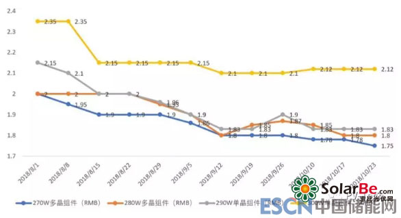 根據(jù)PVInfolink公布的數(shù)據(jù)顯示,今年以來,不同類型的光伏組件均價下降了0.8元/W左右,降幅達到28%~31%。業(yè)界認為,連續(xù)兩年如此大幅度的價格下滑不太合理,2019年組件價格下降空間不大。