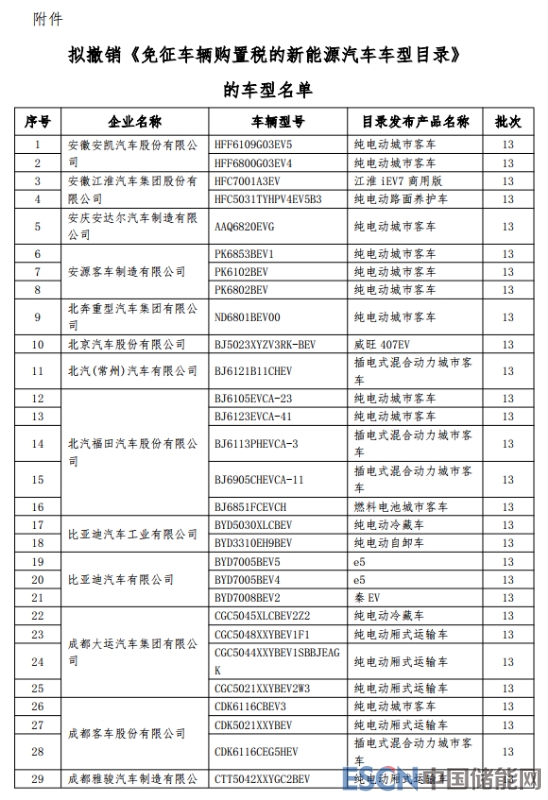 中國(guó)儲(chǔ)能網(wǎng)訊:日前,工信部發(fā)布了《關(guān)于擬撤銷(xiāo)<免征車(chē)輛購(gòu)置稅的新能源汽車(chē)車(chē)型目錄>名單的公示》。據(jù)統(tǒng)計(jì),本批名單包含77家企業(yè)的199款車(chē)型,其中含14款新能源乘用車(chē),涉及車(chē)型包括比亞迪e5、比亞迪秦EV、奇瑞eQ1、昌河北斗星E、江鈴E160等。