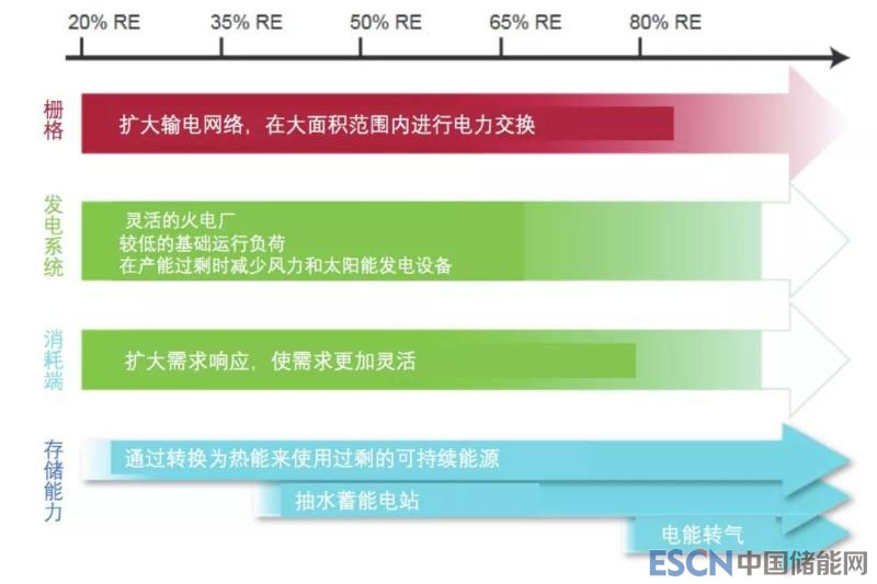 靈活性部件取決于可再生能源的份額。資料:Ecofys