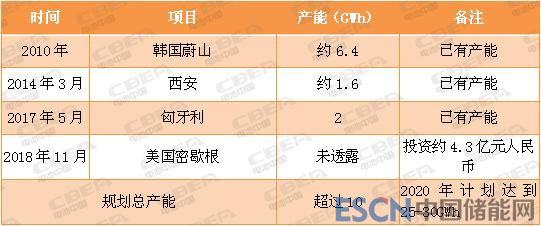 LG化學(xué)在韓國、中國、波蘭和美國都建有動力電池工廠。據(jù)不完全統(tǒng)計,2011年,LG化學(xué)與現(xiàn)代Mobis合資建造梧倉工廠,初期投資290億韓元(約合1.8億元人民幣),可配套10萬輛電動車(以一輛車需要40kWh計算,產(chǎn)能約為4GWh);隨后,其與美國政府聯(lián)合在美國霍蘭德建造電池工廠,2013年投產(chǎn),可配套6萬輛電動車(以一輛車需要40kWh計算,產(chǎn)能約為2.4GWh);2015年10月,LG化學(xué)在中國南京棲霞區(qū)建造的第一座電池工廠竣工,2016年投產(chǎn),產(chǎn)能已經(jīng)達到了3GWh;2018年7月,LG化學(xué)開始在南京市江寧濱江開發(fā)區(qū)投資建設(shè)電池工廠,根據(jù)規(guī)劃將持續(xù)投資約20億美元(約合137億元人民幣),2019年10月開始投產(chǎn),預(yù)計2023年可實現(xiàn)產(chǎn)能32GWh;2018年11月,LG化學(xué)向其在2015年即已建成的波蘭工廠追加投資5億歐元(約合39億元人民幣),計劃將該工廠動力電池的年產(chǎn)能提高到70GWh。