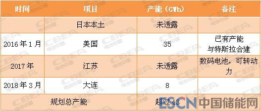 為提升競爭實力,穩(wěn)固龍頭位置,松下一直不斷擴充動力電池產(chǎn)能。2016年1月,松下與特斯拉聯(lián)合投資50億美元(約合342億元人民幣)在美國建設(shè)超級電池工廠,2017年已投產(chǎn),2018年總產(chǎn)能35GWh,現(xiàn)已實現(xiàn)盈利。