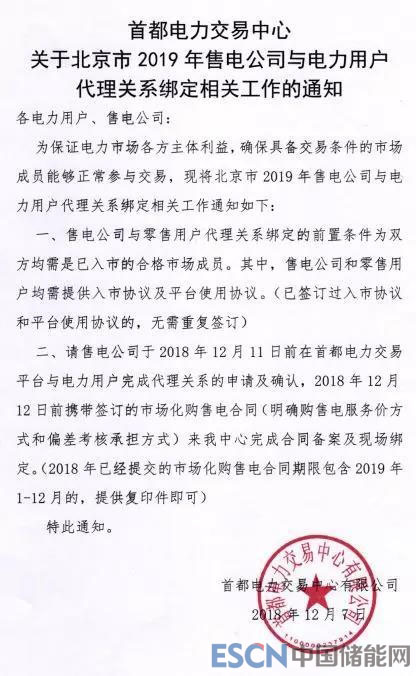 中國(guó)儲(chǔ)能網(wǎng)訊:7日,首都電力交易中心發(fā)布了《關(guān)于北京市2019年售電公司與電力用戶代理關(guān)系綁定相關(guān)工作的通知》,正式開(kāi)始2019年售電公司與電力用戶的綁定工作。