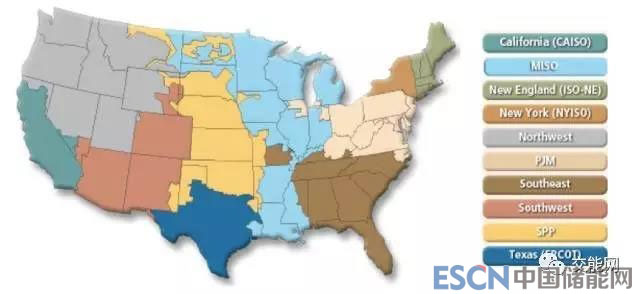 美國(guó)10個(gè)電力批發(fā)市場(chǎng)示意圖(來(lái)源:www.ferc.gov)