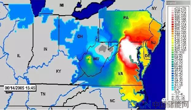 節(jié)點邊際電價在整個交易區(qū)域的不同部分可能變化很大,并且可能非常不穩(wěn)定,這具體要取決于整個系統(tǒng)的邊界條件。下圖顯示了PJM系統(tǒng)中節(jié)點電價的熱圖,圖中白色的區(qū)域為節(jié)點電價最高的區(qū)域,之后是紅色、黃色、綠色的區(qū)域。而顏色越藍,則表示節(jié)點電價越低。圖中白色區(qū)域為華盛頓特區(qū)。華盛頓特區(qū)電價最高的原因是因為PJM電網(wǎng)中存在傳輸能力的不足,限制了像俄亥俄州這樣的地區(qū),提供低成本電力用來滿足華盛頓特區(qū)等高電力需求。因此華盛頓特區(qū)只能使用更靠近該地區(qū)的高成本發(fā)電機組。