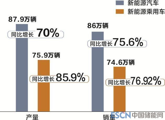 根據(jù)中國汽車工業(yè)協(xié)會數(shù)據(jù)顯示,今年1-10月,我國新能源汽車產(chǎn)銷量分別為87.9萬輛和86萬輛,同比分別增長70%和75.6%。其中,新能源乘用車產(chǎn)銷量分別為75.9萬輛和74.6萬輛,同比分別增長85.9%和76.92%,增長態(tài)勢十分強勁。